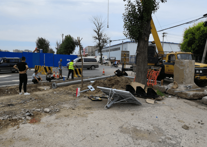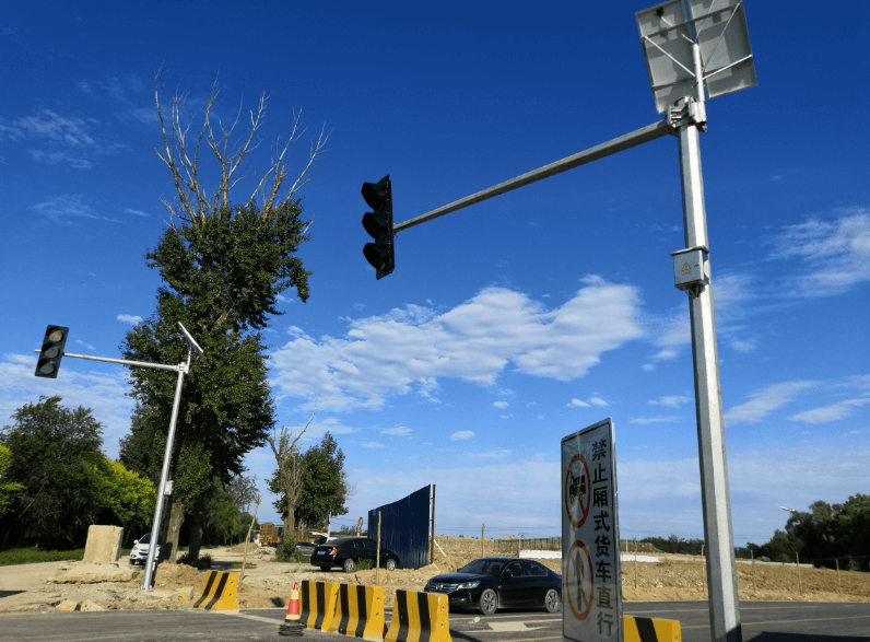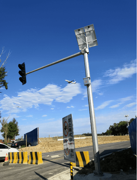 ,由于此路段不便走地下線,故此本次設計全部為太陽能光伏發(fā)電,紅綠燈監(jiān)控桿安裝完成后將為機場周圍居民提供出行便利條件。
